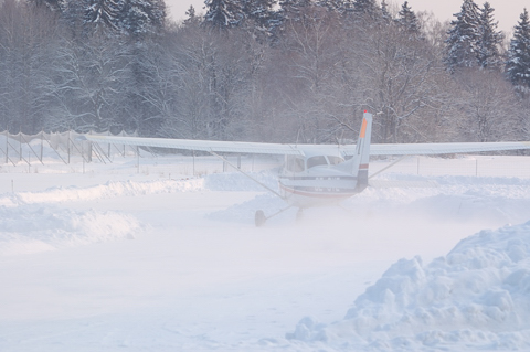 Flygplan taxar ut till startbanan på Barkarby flygfält 30 januari.