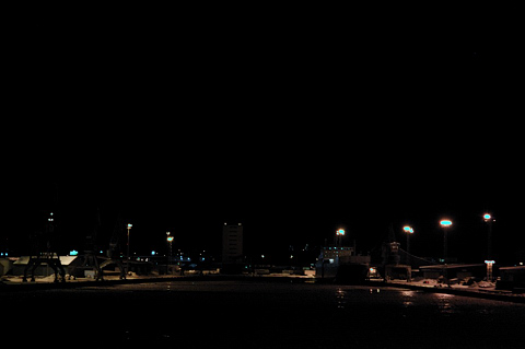 Åbo 6 mars vid niotiden på kvällen. Fotograferat från Sverigefärjans ytterdäck strax före avgång.