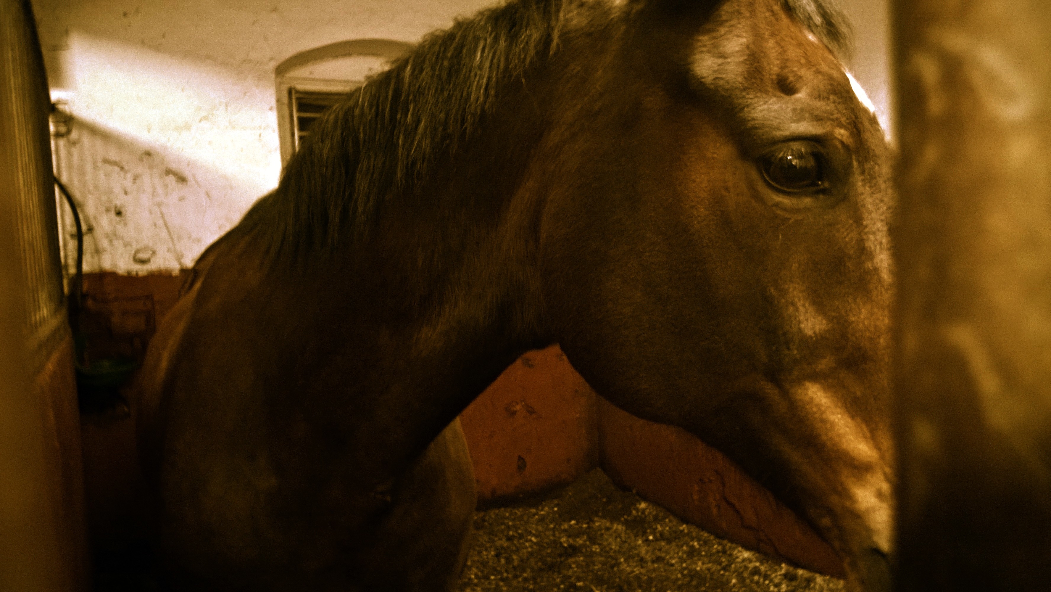 in the eye of a horse;